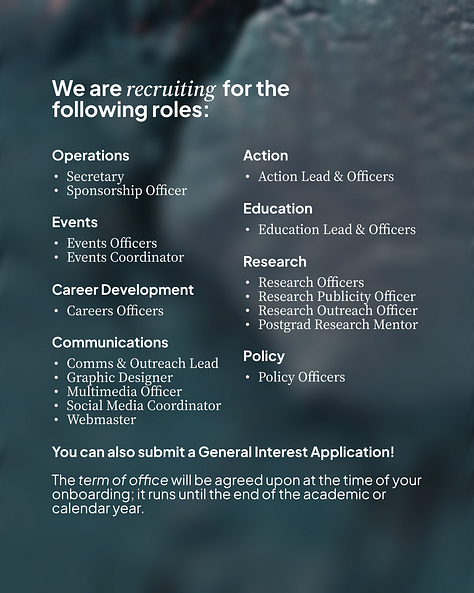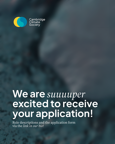We are continuing our rolling applications for anyone who wants to get involved with the climate community in Cambridge and CCS! This is a hugely exciting opportunity to get involved with running and shaping an impactful student organisation, forging links across Cambridge and beyond.